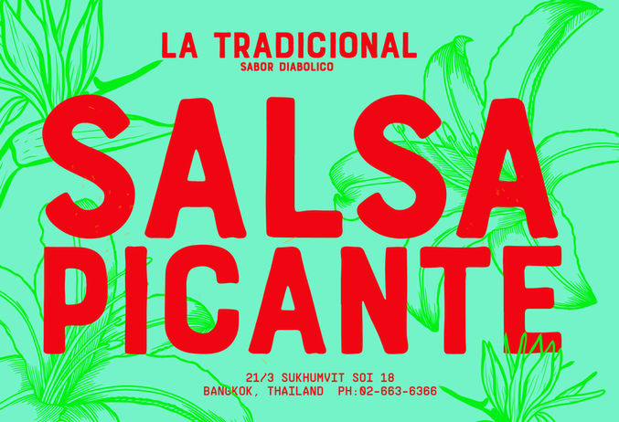 Since the owners are creatives, and one is a classically trained artist, they had spent hours lovingly decorating and painting murals inside the restaurant, so their place felt and looked truly like a charming small taqueria transported from Mexico to Thailand. These beautiful hand-painted walls adorned with images of Luchadores, Frida Khalo, and Mariachi musicians served as an inspiration for the gritty layered look and feel. The visual layering blended Mexican iconic imagery with powerful color palettes, and the bold type supported the design. The overall design communicated the many flavors of the country’s culture.